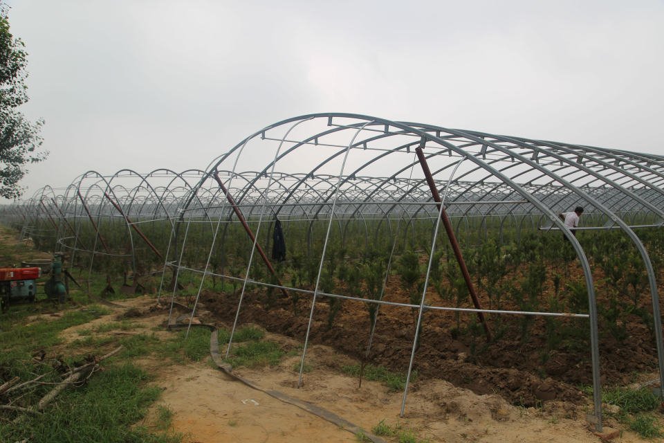 東北紅豆杉項目組人員都放棄了休息時間、放棄了與家人團聚的機會,始終斗志昂揚地堅守在第一線。遇到天氣突變、人手短缺、缺水、剩苗等問題,大家都主動加班,甚至栽植到深夜。尤其是六月份,是反季節全光噴霧栽植困難最多最大的月份,高溫大旱,東北紅豆杉栽植時用水量較大,使后期灌溉水供應不足,眼看著新栽的小苗一點點發蔫,大家都急得如熱鍋上的螞蟻一樣!姜總率維修隊連夜打井,竭盡全力保障供水;宋總千方百計加派人手,并抽調水車運水支援;康總則寸步不離地管控著小苗的栽植質量;個別物料短缺,印主任不顧術后病痛彎著腰,騎著電動車一趟趟搬運材料;70來歲的陳教授不顧頭上的傷,頂著烈日逐棚督查苗木成活情況……他們不畏艱辛,吃苦耐勞,克服了五月的大風、六月的干旱、七月的高溫等惡劣條件,日夜守護著東北紅豆杉,用厚實的雙手辛勤地耕耘著、奉獻著!