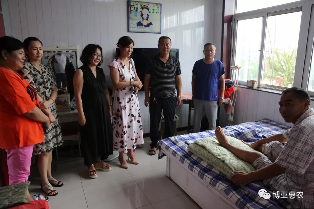 8月13日,集團工會受董事長宋樸海、總經理田成久委托,協同集團人力資源部、博亞惠農工會,在博亞惠農公司副總經理姜明玉、宋樸武陪同下,帶著企業對員工的關心和愛護,專程到盤山縣高升鎮,看望因意外受傷而在家休養的員工,并表示親切的慰問。